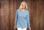 • V-notch neckline with double sided coverstitch